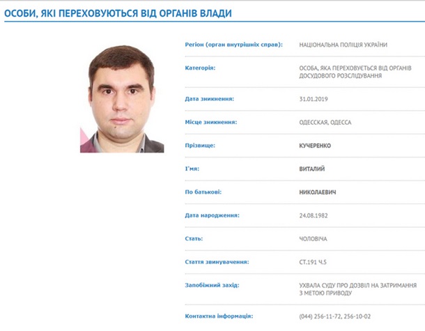 По данным на сайте МВД, суд разрешил задержать обоих Кучеренко. Согласно сообщению Нацполиции, их разыскивают в связи с присвоением и растратой чужого имущества. Им грозит лишение свободы на срок от семи до 12 лет с конфискацией имущества и запретом заниматься определенной деятельностью в течение трех лет.