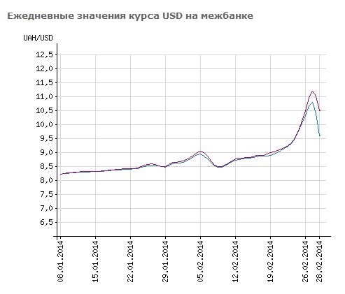 Сегодня на межбанковском валютном рынке Украины торги по доллару США открылись следующими котировками 9,6000/-, а к 12:00 цены ушли вверх 9,5000/10,2000.