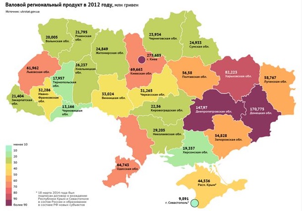"ВВП Украины, как ожидается, снизится в этом году на 5-7%. Эксперты предупреждают: этот прогноз может ухудшиться, если восстание в Донецкой и Луганской областях будет расти, потому что охваченный волнениями регион - сердце украинской тяжелой и горнорудной промышленности. На него приходится около 16% ВВП всей страны", - пишет издание.
