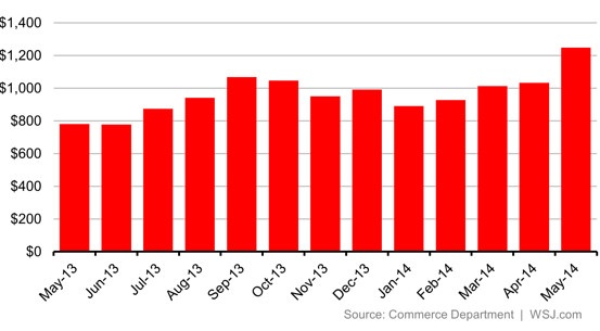 Согласно опубликованным в четверг данным Министерства торговли США, объем экспорта в Россию составил в мае 1,2 млрд. долларов. Спрос на американскую продукцию в РФ не только не пострадал, но и продемонстрировал 21-процентный рост по сравнению с предыдущим месяцем.