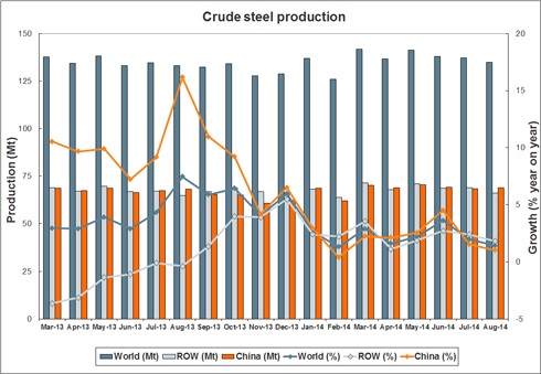 "В Украине в августе было произведено 1,8 миллиона тонн сырой стали, что на 37% меньше по сравнению с тем же месяцем 2013 года", – сказано в сообщении Worldsteel.