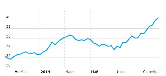 Рубль осенью переживает очередной виток снижения, теряя позиции на фоне высоких геополитических рисков и падения цен на нефть. Кроме того, на валютном рынке нарастают опасения дефицита иностранной валюты: по оценке участников рынка, российским компаниям до конца года необходимо найти более 100 миллиардов долларов на погашение внешних долгов и процентов. Пик выплат придется на ноябрь.