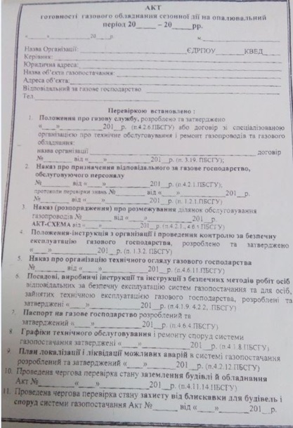 Такие акты готовности газового оборудования на период отопительного сезона 2014-2015 годов обязывают заполнить районные филиалы по эксплуатации газового хозяйства. Руководители отмечают, что в прошлом году подобных проблем со стартом отопительного сезона не было.
