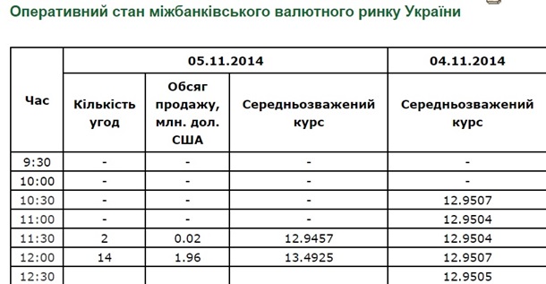 Сегодня, 5 ноября, к 12:00 на межбанке резко подорожал доллар, установившись на уровне 13,09-13,60 гривен по сравнению с 12,96-13,46 гривен на открытии.