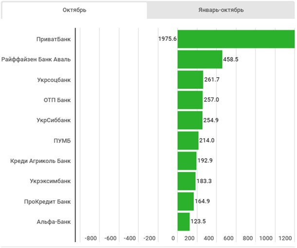 Указано, что второе место в октябре с прибылью в 458,5 млн гривен занял Райффайзен Банк Аваль.