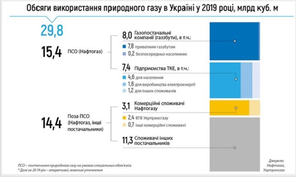 “Нафтогаз поставил около 15,4 млрд куб. м природного газа во исполнение спецобязательств по ПСО. Из них около 8 млрд куб. м получили газоснабжающие компании (частные газсбыты и ГПК Нафтогаз Украины) для покрытия потребностей населения“, - говорится в сообщении.