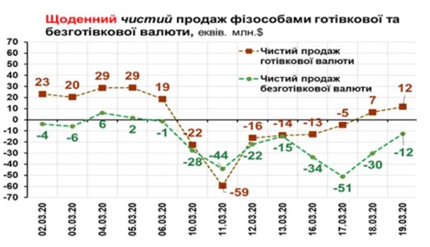 “Именно в этот период в кассах банков граждане покупали значительно больше инвалюты, чем сдавали. Это влекло за собой стремительное снижение обменного курса гривны. Пик покупок пришелся на 10, 11 и 16 марта: в эти дни украинские банки продали в кассах соответственно 148 млн долларов, 114 млн долларов и 106 млн долларов. При том, что среднедневной спрос на наличную валюту в этому году составляет 64 млн долларов“, - говорится в сообщении.