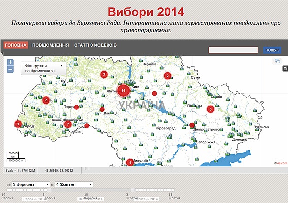 Министерство внутренних дел запустило геоинформационную систему Выборы-2014, позволяющую всем желающим отслеживать ситуацию по нарушениям избирательного процесса. Об этом сообщается на сайте ведомства.