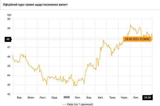 Національний банк України оновив курси валют на 28 серпня 2025 року.